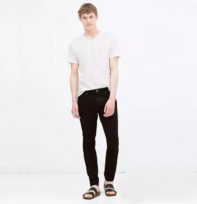 两条宽带的凉鞋是比较流行且常见的款式,其宽带与黑色相映出一种粗犷感,搭配修身牛仔裤,完美大长腿轻松显现。