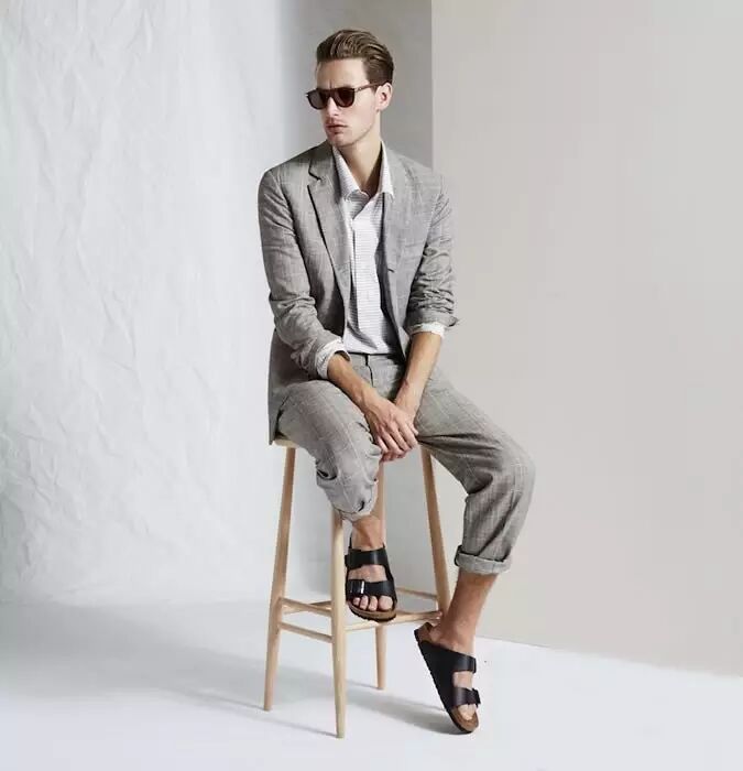 经典款的双宽带凉鞋可以搭配休闲西装,这种“亦正亦邪”的混搭,非常有感觉。