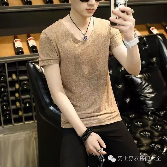冰丝T恤,清凉舒适,并有着其独特的纹路,轻松的就打破了纯色T恤的单调与乏味,更显时尚感,让你在人群中更加的耀人哦~简约别致的V领,独具匠心,精美而又富有质感,更是流露出一股淡淡的男性性感,立体的剪裁,T恤的上身效果更加的显著,隐约勾勒出的胸肌,最是诱惑,出去撩妹最是适合不过。