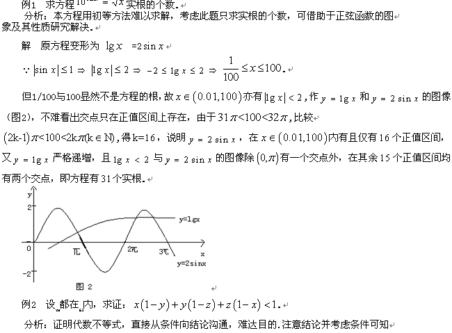 数形结合是数学中一种重要思想方法,也是高考要考查的重点思想方法之一,数形结合以解题的直观,形象,简洁著称,下面从几方面谈谈其在中学数学解题中的优越性.