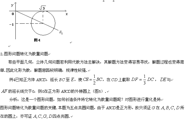 有关数的问题,借用形的性质之后,有助于对问题的内在联系更进一步的了解,从而变易错为准确,化繁琐为简捷.而数量问题转化为图形问题的主要方法是用几何方法解决代数问题,而几何方法具有直观,形象的优势.