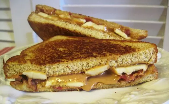 5、把另一块面包(有酱的一面)放到香蕉上面即可。