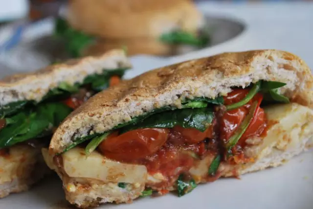 4、将两片面包相叠做成乳酪夹心的三明治即可,要趁热吃噢。