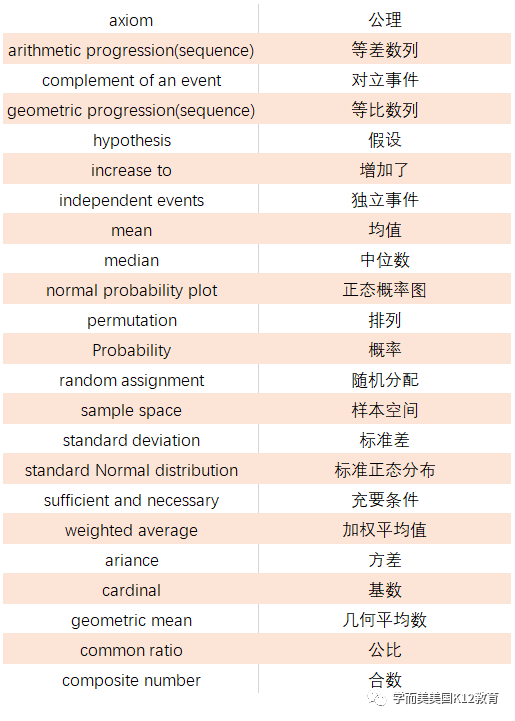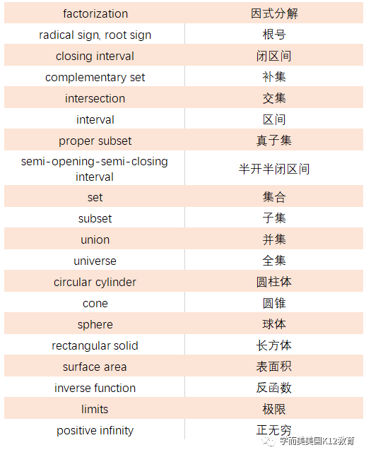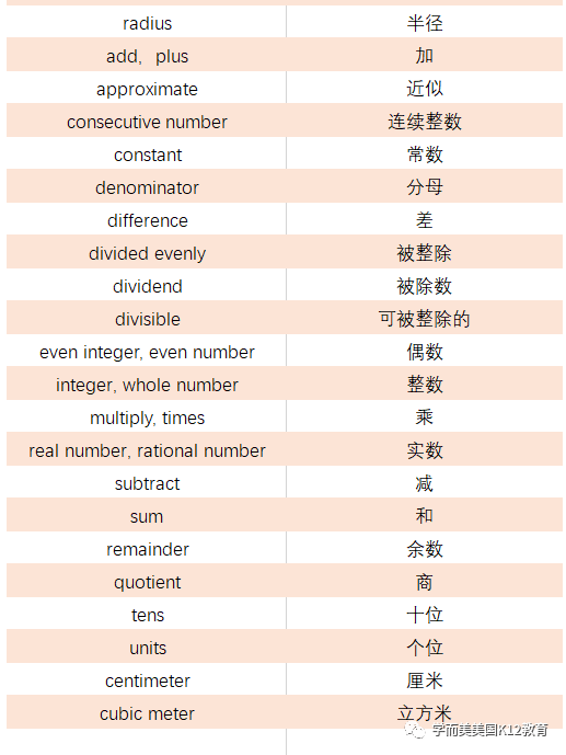因此在考前将数学词汇重新梳理一遍是非常有必要的!今天学而美将国际学校小学、初中、高中阶段的数学高频词汇分享如下,希望对你有所帮助~