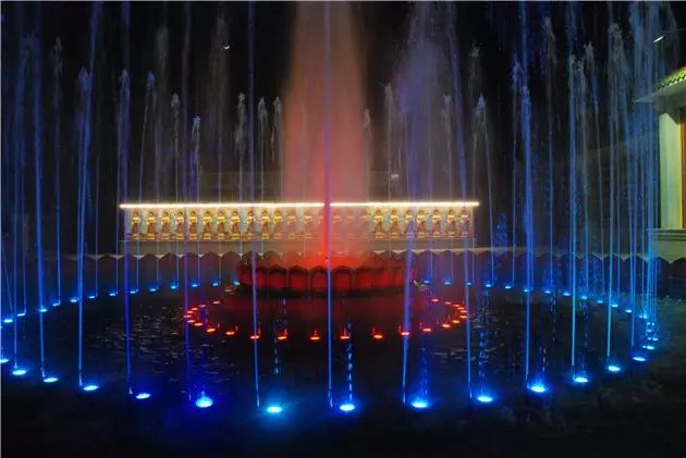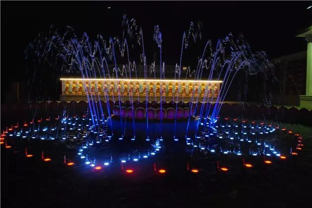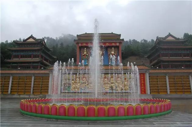 莲花音乐池是北山古寺的一道靓丽的佛教文化景观,其规模宏大,呈双重莲花宝座设计,大莲池直径达15米,可喷射出20种水型。是全国最大的莲花音乐池。