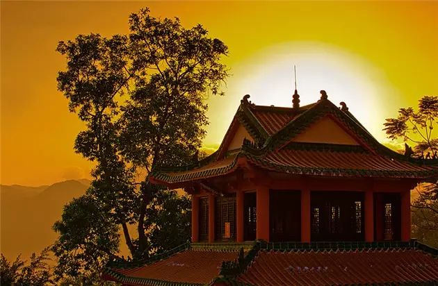 ▲此时无声胜有声!树,夕阳,寺庙,简单的景物构成了惊心动魄的美!