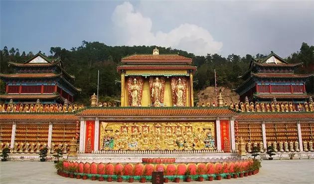 ▲进入西方极乐世界广场,首先出现在我们眼前的是西方三圣。