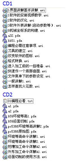 2;CIM12中文界面造型教学视频文件列表