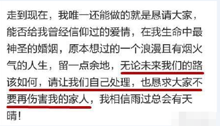 下一段中,真的是好男人贾乃亮对家人想说的话,对甜馨、对父母和岳父母、对妻子,对所有身边的人,其实在整件事情中,贾乃亮算是被伤的最直接的人,却反过来要照顾到所有人的想法、感受,平复争议,抚平创伤,亮哥的每一句话读起来都那么让人心酸、心疼、无奈。
