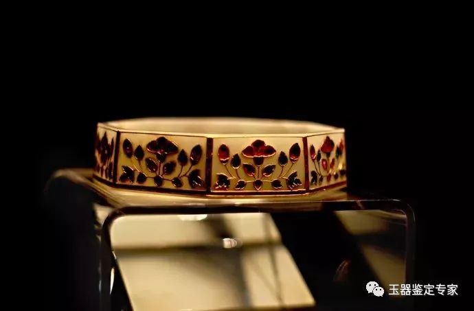 嵌宝八角盘为阿拉伯痕都斯坦玉器风格,,痕都斯坦位于今印度北部、巴勒斯坦大部,所制玉器以薄胎、镶金嵌宝最具特色,清乾隆时传入中国并引发仿制之风。