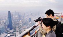 “笋”之一:视野最开阔。150元门票可以上到84层、433.2米高的观光厅,100元门票可以上到66层、339.6米高的观光厅,50元门票只能到32层、162.8米高的观光厅。说视野,自然是84层最好,整个羊城尽收眼底。