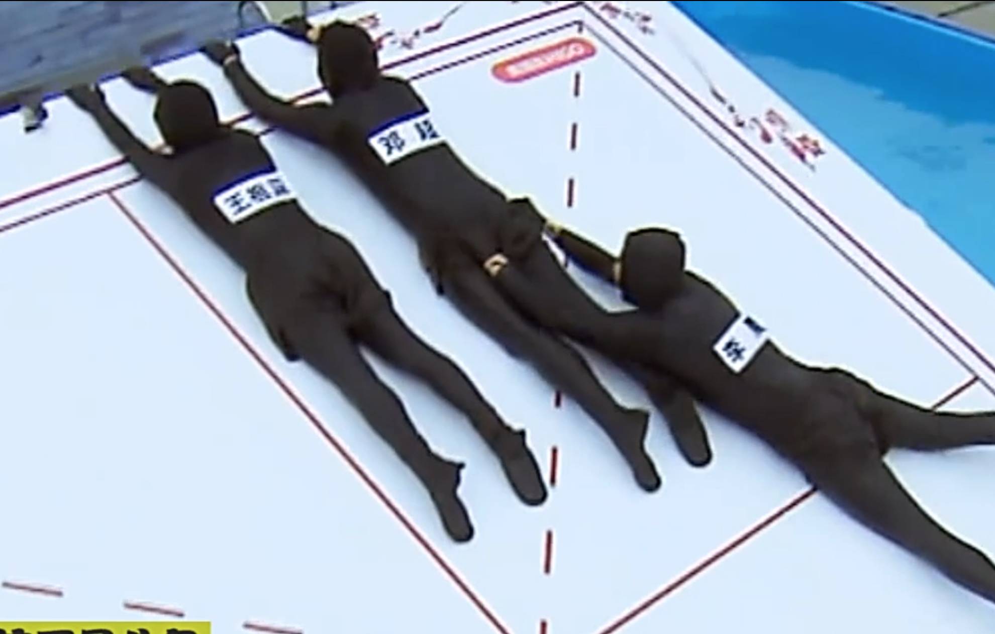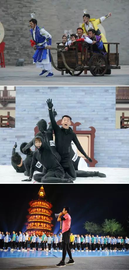 之后就开始玩游戏了:人形拼字游戏;头顶水杯拉车;挑战66人跳大绳。头顶水杯拉车尴尬没笑点节奏慢我就不吐槽了,那广播操一样的众人跳大绳到底是个什么鬼,就那样让我们静静的看着一大堆人跳了几十分钟的大绳你们也好意思嘛?所有参与的人都像游魂一样,默契、激情和笑点基本是看不到的。