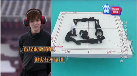 为了拼出手机这个词,一群人围成了一圈,大黑牛努力蜷成一坨扮演home键,还凭借这个“home键”上了热搜