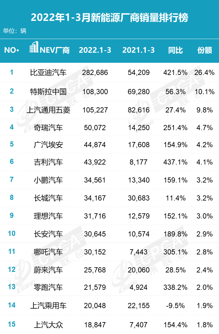 具体到各个车企,乘联会统计的前十五名中,除了上汽乘用车因为总部在疫情重灾区原因出现销量下跌之外,所有车企的成绩都是同比上涨。
