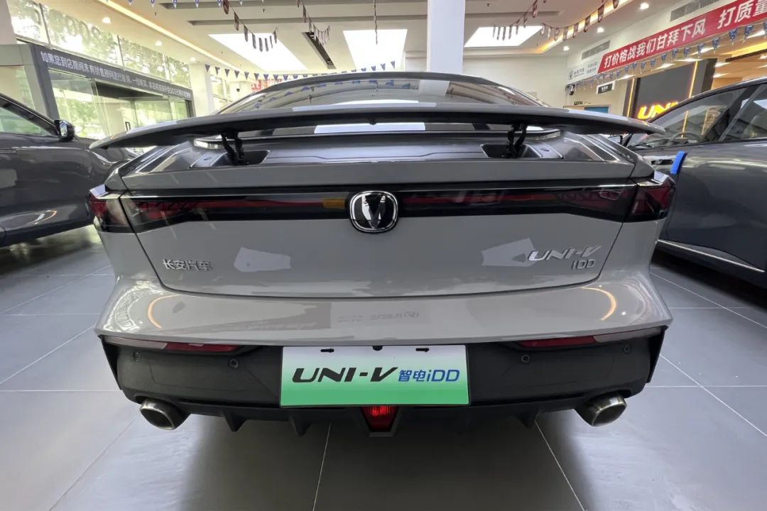 在车身尾部,长安UNI-V 智电iDD和驱逐舰05都采用贯穿式尾灯设计,紧随时代潮流。不同的是,长安UNI-V 智电iDD还装配了电动尾翼和真双出排气,整个尾部的运动气息会比驱逐舰05更加浓烈。如果你喜欢运动化的设计,那长安UNI-V 智电iDD无疑更适合你。