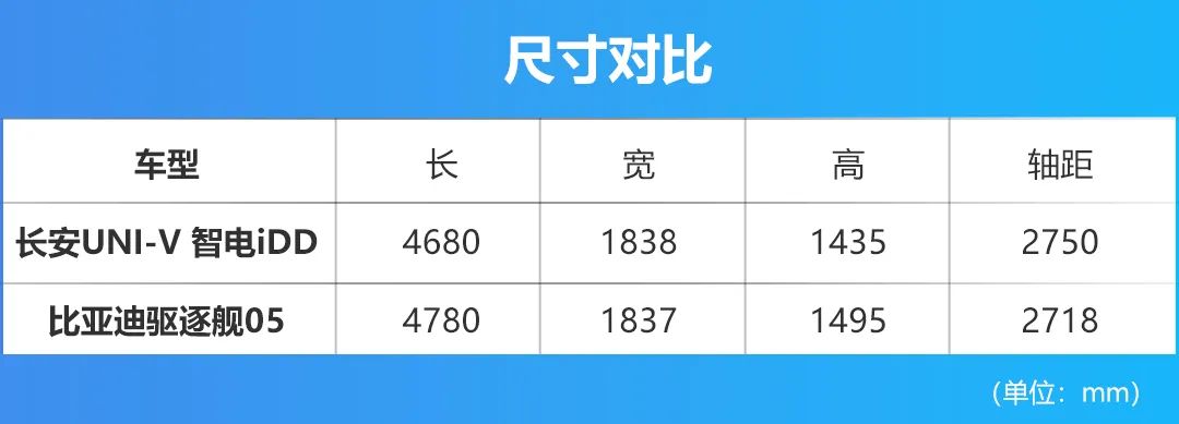 在车身尺寸方面,长安UNI-V 智电iDD的轴距为2750mm,长宽高分别为4680/1838/1435mm。与驱逐舰05相比,长安UNI-V 智电iDD的轴距更长一些,但是车身更小一点,尤其是车身长度。如果你特别在意车身大小,那就直接购买驱逐舰05。