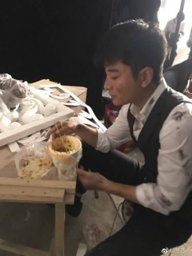 贾乃亮片场吃饭好随意,助理打包一份沙县米线,衣服都没有来得及换,贾乃亮太饿了.....