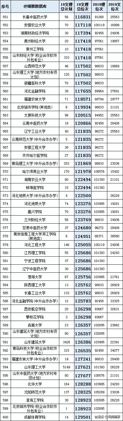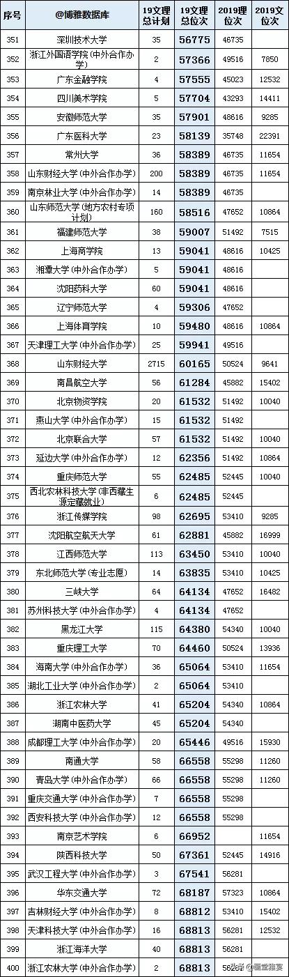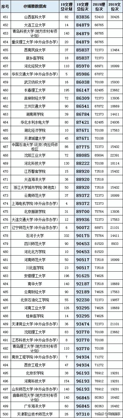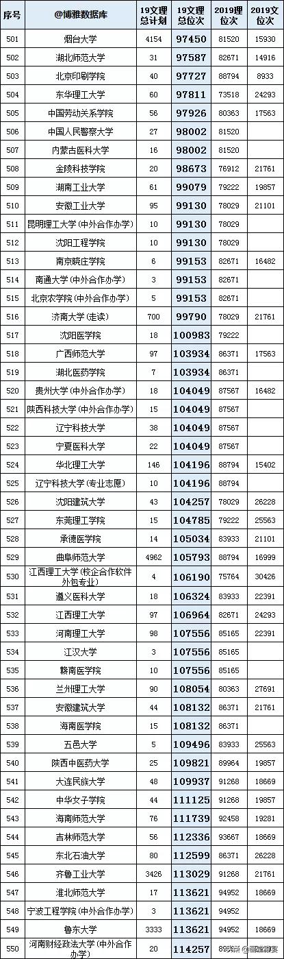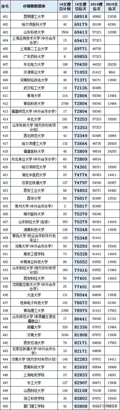 山东高考2019文理合并位次表(一),供2020山东考生参考