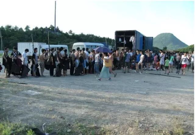 一天拍摄工作结束,收工的时候要记得排队交衣服~千万要小心少个帽子,少个护手什么的,丢了东西就要赔偿了……