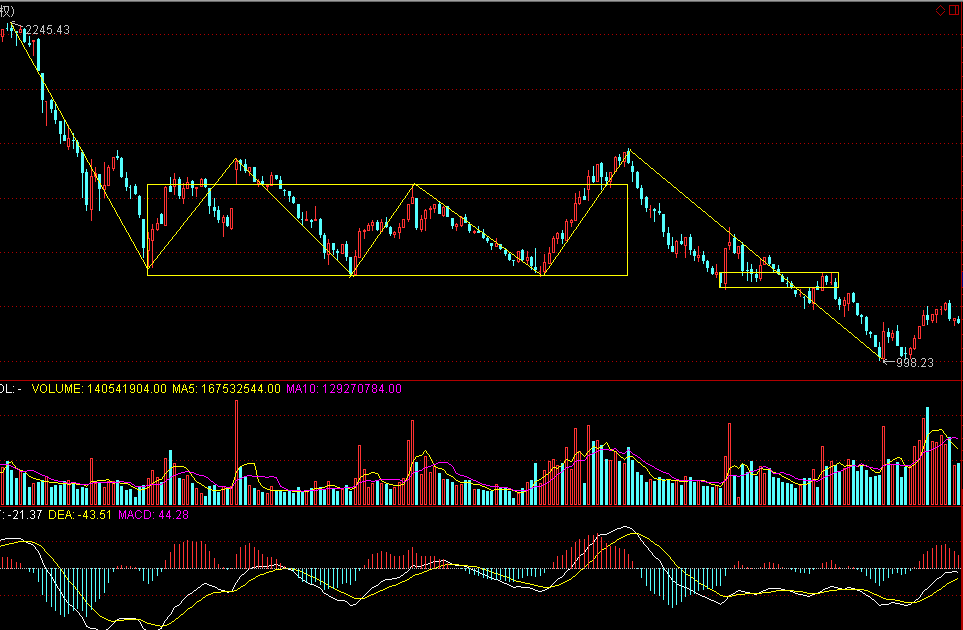 我们回首998点形成,是从2245点下来的一个周线笔中枢的盘整背驰点。(特别说明:缠师在108讲前面所用的标谁中枢是笔中枢,到后面重新严格定义的是线段级别中枢是标谁中枢,后面为什么这样定义,可能是为了小级别往上递归的方便。)