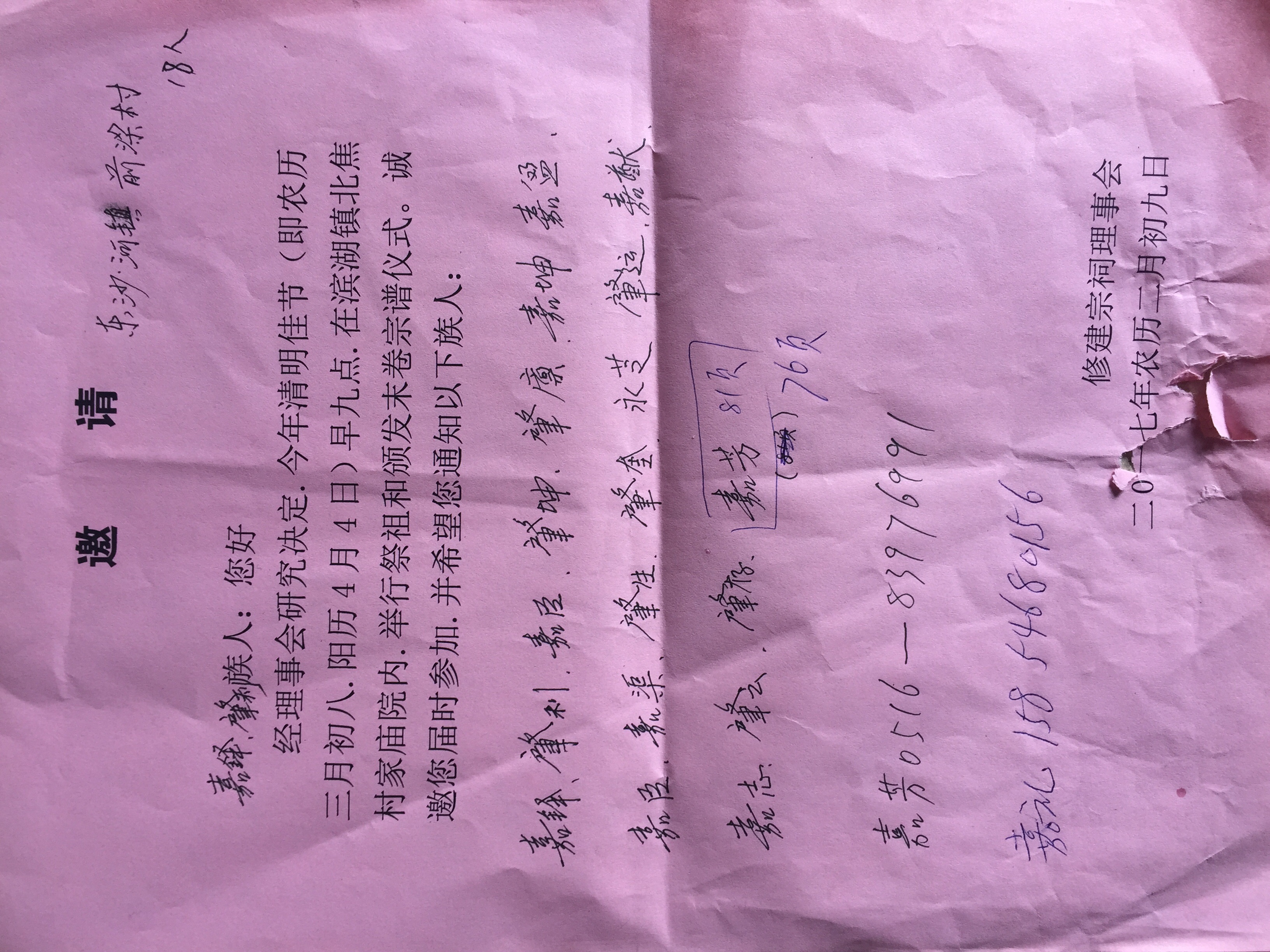 由马氏宗祠修建理事会组织的“马氏家族祭祖庆典暨颁发末卷宗谱仪式”,在滨湖镇北焦村马氏宗祠隆重举行。来自枣庄、济宁、临沂、徐州等地的兴旺成老三支族亲近500人参加了活动。我们作为前梁村的马氏代表,亦应邀出席。