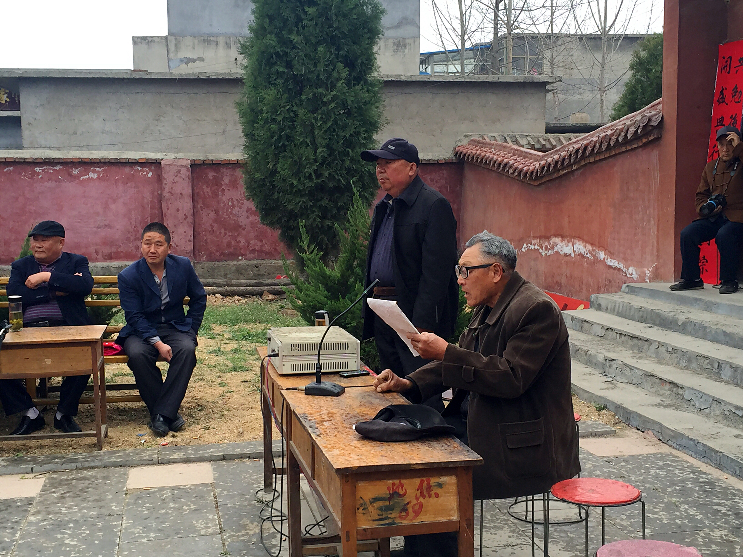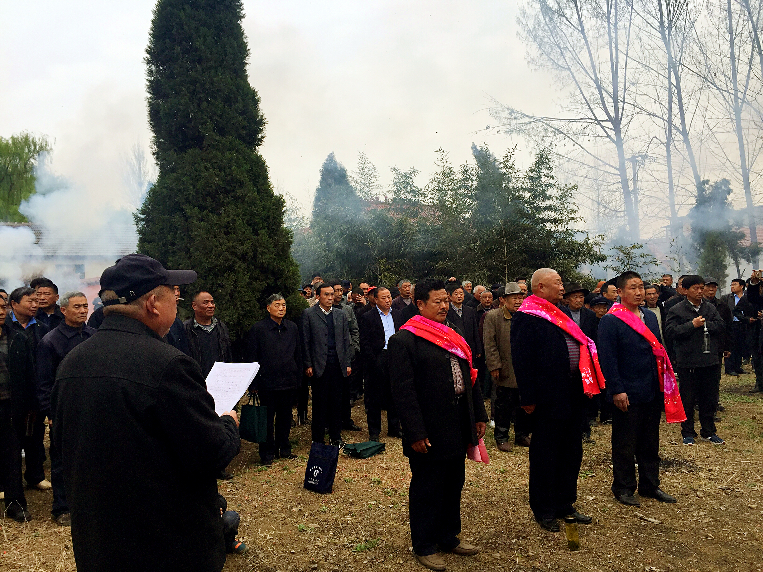 礼毕后进行大会发言。首先由会长19世马加礼代表理事会,向族人汇报十年来的工作情况。他说,自二零零六年底,开始筹划成立统修族谱理事会至今,已历时十一个年头。十多年来,在到会的各位族亲的大力支持下,已圆满的完成了迁移始祖茔,恢复老林,统修族谱,新建家祠几大任务,为后人交流思想、祭祀先祖搭建了团圆平台,这一系列工作的实施,北焦村两委会及全体村民贡献巨大,功不可没,马氏族人永远难忘!