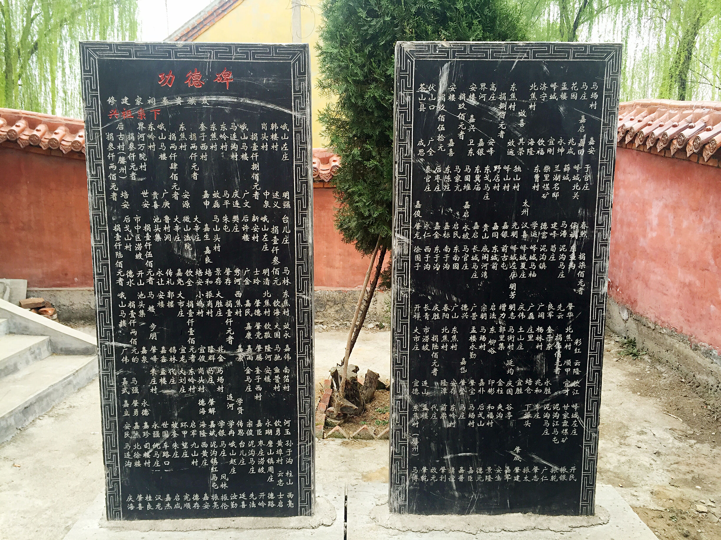东厢房,排列着族人捐资尽孝碑,记载着他们的生平及对先祖的敬奉。