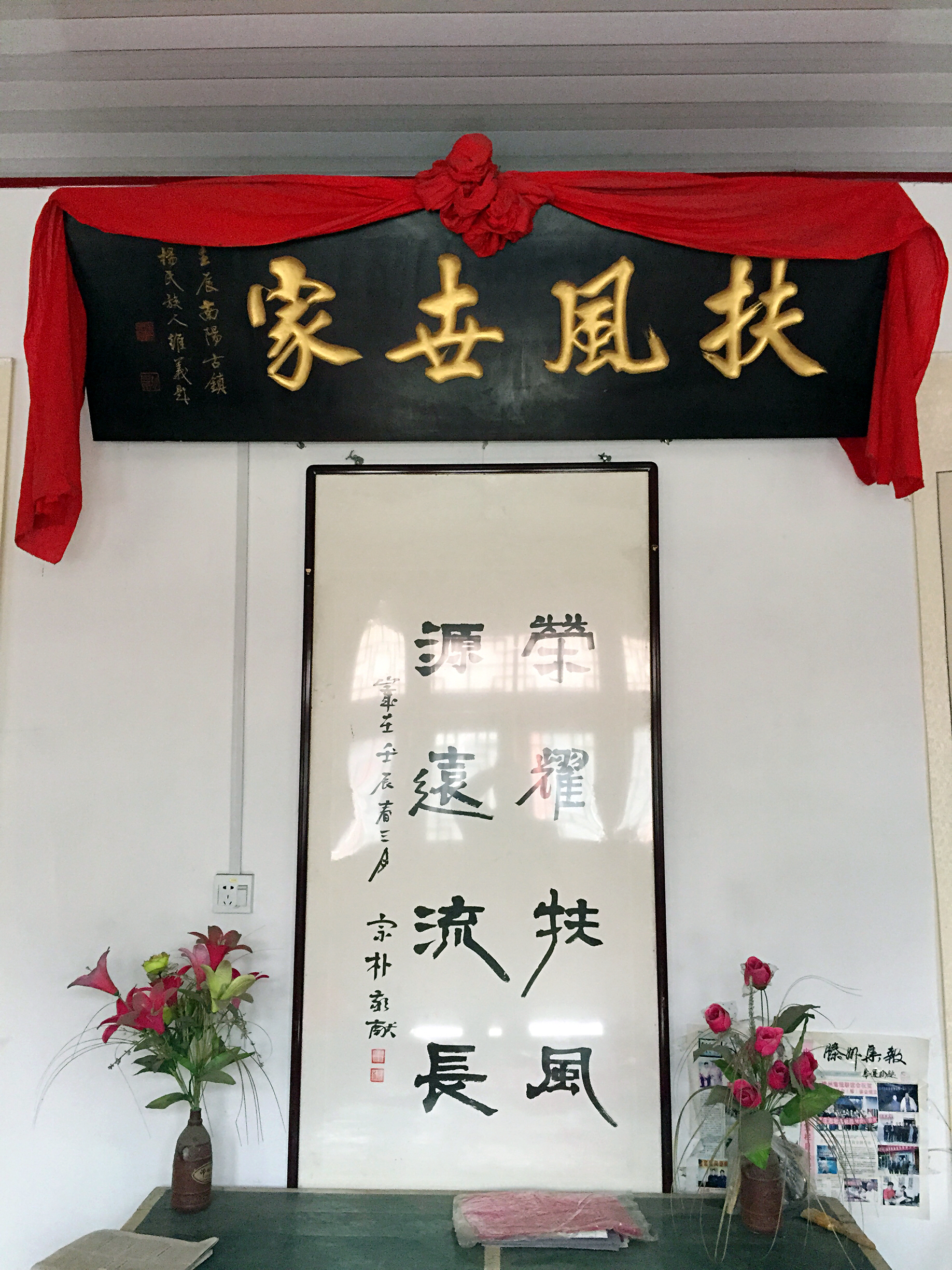宗祠最前方矗立着四根石门柱,象征着四面八方之族众顶天立地,巍然屹立。由旺祖系十八世汉国捐赠。柱联:扶风堂前程似锦,兴旺成人才辈出。