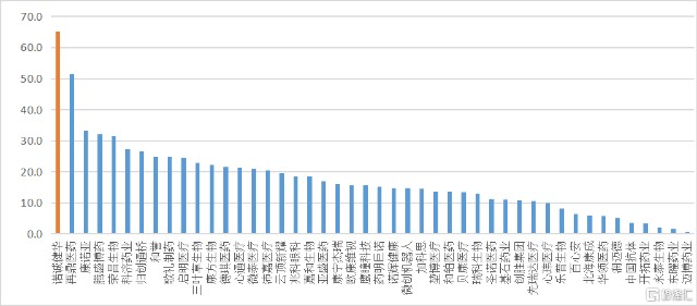 根据WIND数据显示,将公司在中报中披露的现金及银行结余、定期存款以及理财产品都计算入内的话,整体来看18A生物科技公司的现金流还是比较安全的。在近50家公司中16家资金储备超过20亿元,20家在10-20亿元之间,70%以上的Biotech资金储备在10亿元规模以上。