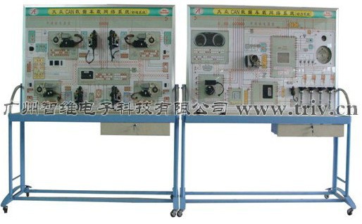 本示教台采用大众帕萨特B5轿车CANS系统。配以大型彩色喷绘CANS系统电路图,并以CANS电控单元为中心,将系统各个元器件平面布置,为使线束清晰明了连线表示方法与原车线束相同,使CANS系统一目了然.充分展示汽车数据传输网络系统的组成结构和电路元件通过数据传输执行工作。通过组合仪表的网关控制连接,可把动力系统数据网络和舒适系统数据网络连接,组成完整的全车CAN网络系统。操纵档位开关,在组合仪表显示过程中体现网络传输;操纵电动车窗、后视镜、中控门锁过程中体现网络传输等。可以设置模块间的CAN线故障以及各模块的K线故障;通过面板上的实物演示以及检测端子可以进行功能测试与故障分析提供参考的数据,完整地掌握CANS系统的结构和理论知识,了解CANS系统各电控元器件的作用、原理、故障现象。