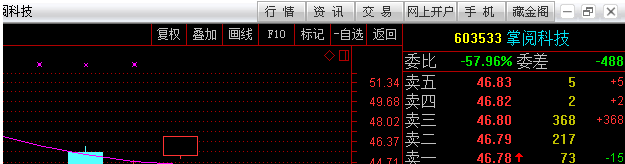 11:19 确实是这样,行情就是这样,不管你愿意不愿意,都只能按着市场既定的节奏去走,刚刚提醒大家注意的掌阅科技十分加速拉升了呢?不过大家愿不愿跟,但是此股的确是重点的拉升了,一旦突破了47的关口,接下来有望演绎新的一轮上涨历程!