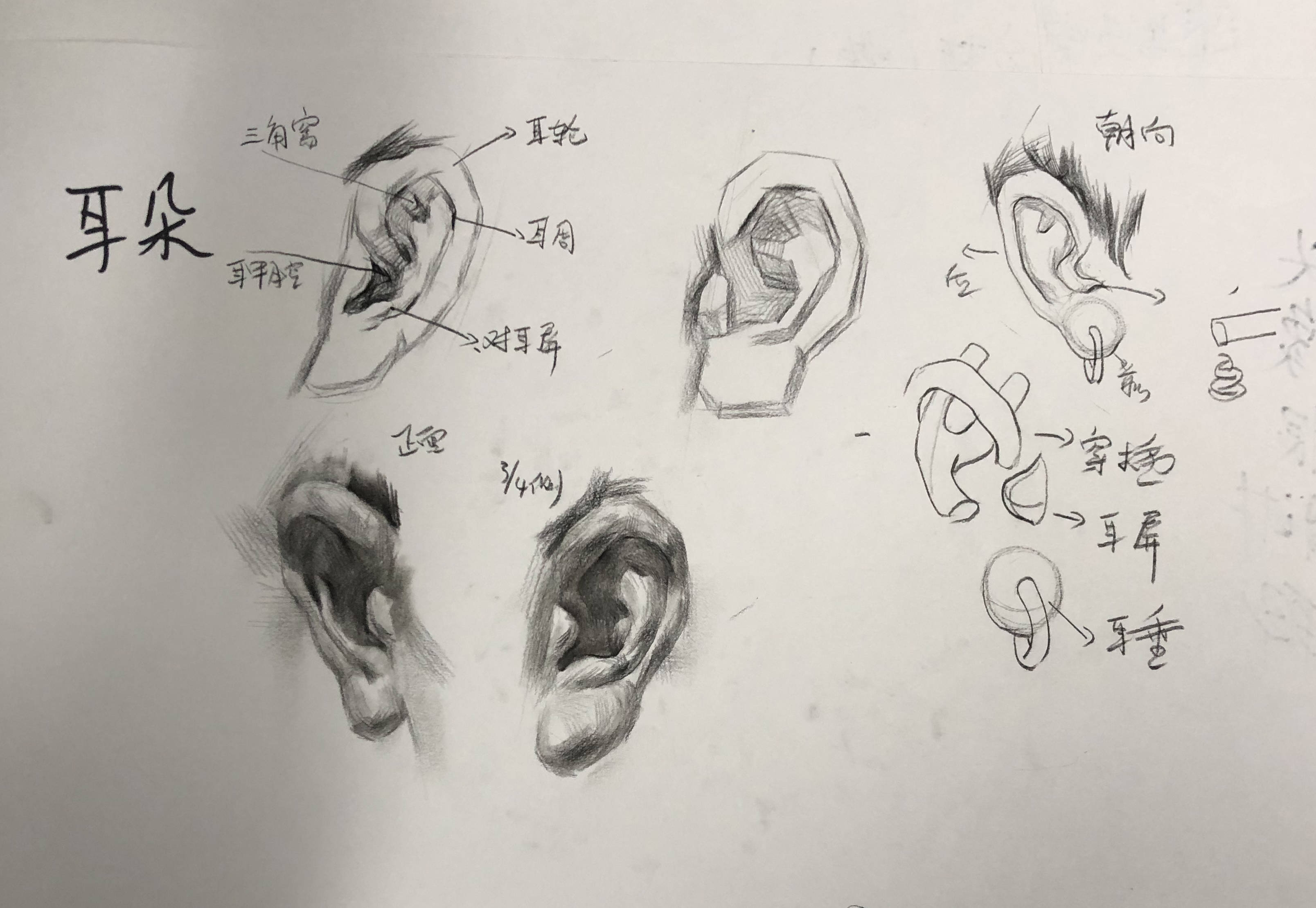头部结构在我们学习素描头像写生时,已经接触过,主要研究头部骨骼的生长规律和肌肉的组织规律。头颅骨圆润、面部骨骼方正。眉弓骨外凸呈房檐状遮住眼睛,额骨呈圆形隆起,左右对称。上颌骨和下颌骨的运动形成了嘴部的张合,颧骨隆突为脸部最宽处,等等这些均属骨骼结构。关于肌肉,我们只需记住一些基本部位即可,例如眼轮匝肌、口轮匝肌、咬肌等等。毕竟艺用人体解剖和医用人体解剖有本质的不同。