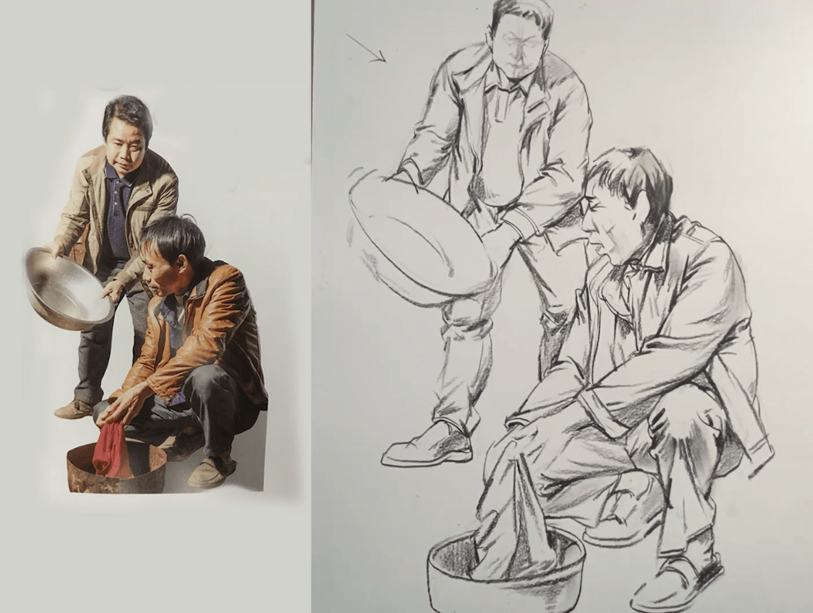 我们研究的只是形状和组成状态,而医用解剖研究的是生长机能与病理知识。对于人体的结构在这里我就不再赘述,大家可以看一些人体结构书,加强对骨骼肌肉的了解,对于画好人物动态速写还是大有裨益的。当然我们画人物动作速写也不是画人体结构图,毕竟还有衣服的遮掩,因此我们既要了解人体内在的形体构成,还要结合外在的衣纹变化,才能更好的体现人物速写的造型规律和展示速写艺术的魅力。