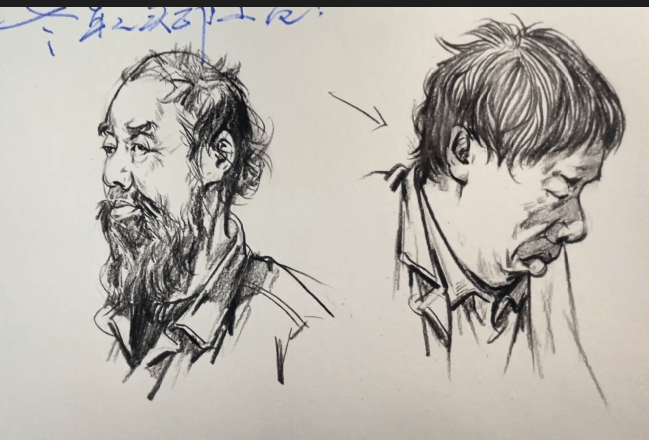 头部是人物速写的重点,它的刻画精彩与否会关系到整张速写的好坏,所以大家要准确把握好头部刻画。