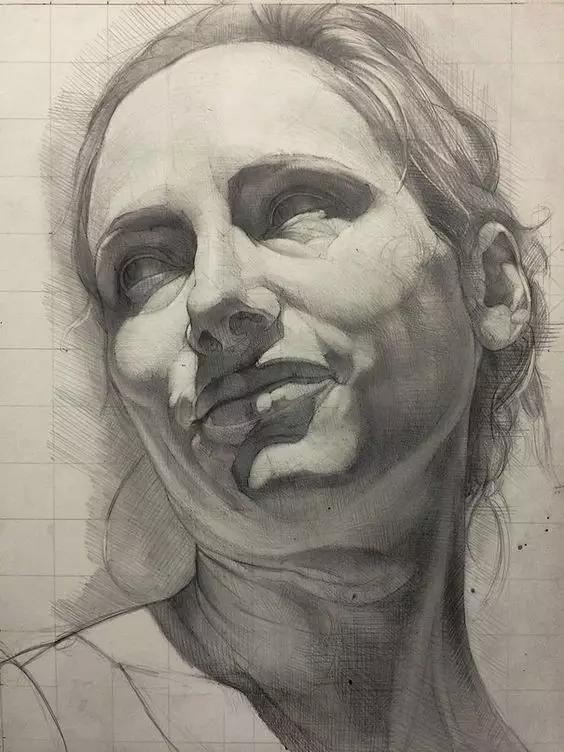 常说的三维空间,即是由高度、宽度和深度所组成的三维空间。素描头像的空间就是由人物头部形体结构的穿插关系、透视关系、明暗变化与虚实变化等组成的,素描头像空间关系要表现强烈,是在外形的准确前提下,利用主次、明暗及虚实拉开关系,所以,小伙伴们,画素描的时候,要注意结构线、结构转折点、明暗交界线、边缘线和投影的处理,虚实变化对空间感的体现很重要。