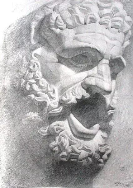 画素描头像一般都是从石膏头像结构开始,画石膏头像一般从大体定位、轮廓。掌握五官结构特征,特别强调一点就是处理石膏头发时一定要注意:要分组化,抓住最能帮助你体现立体的那一组去刻画。训练素描结构石膏,通过学习、训练、逐步掌握石膏五官结构和表现方法。