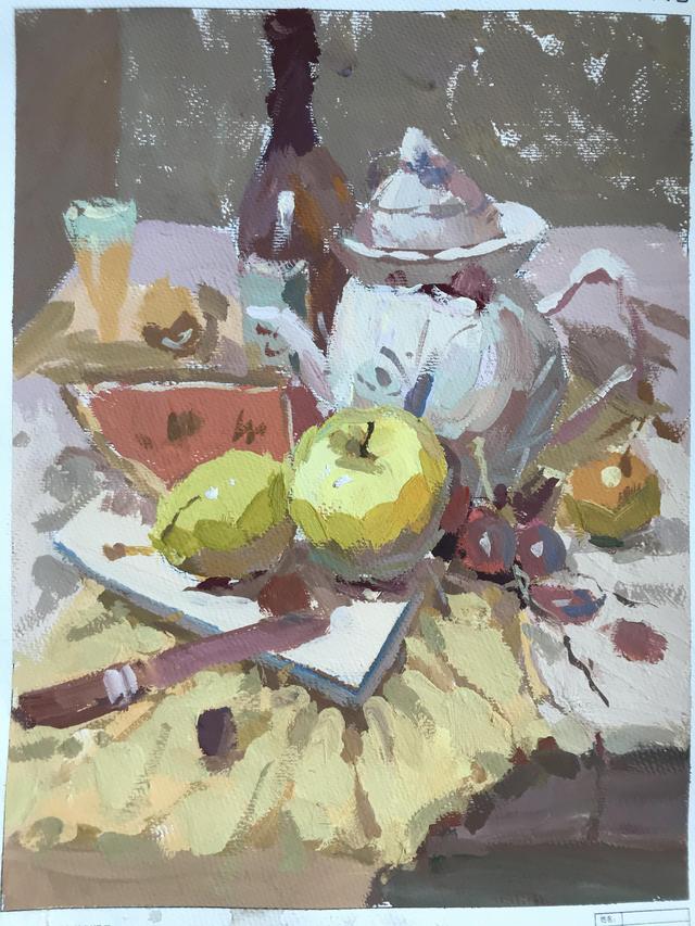 观察好人物形态,构图完成之后就要铺大的明暗调子,对于明暗一定注意画笔不要停留在局部,塑造出大的关系,关注整体变化,然后才是深入的刻画分析,对色调去做细致的比较。
