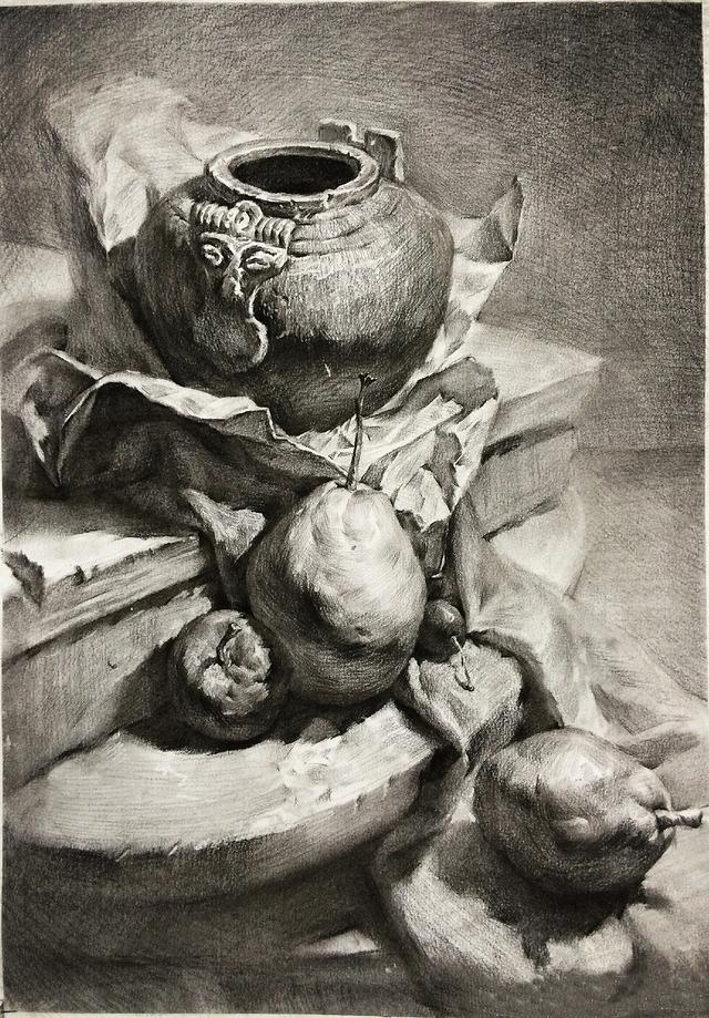 立意在动笔之前要仔细的观察写生对象的形体、神态、特征等特点。既观其形、会其神,见其美,力求意在笔先、以形写神。