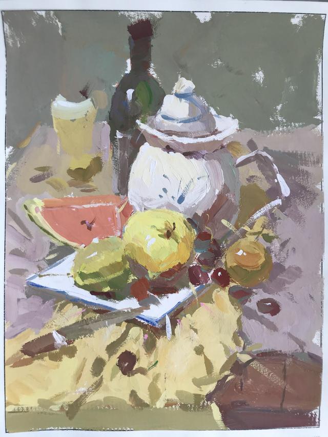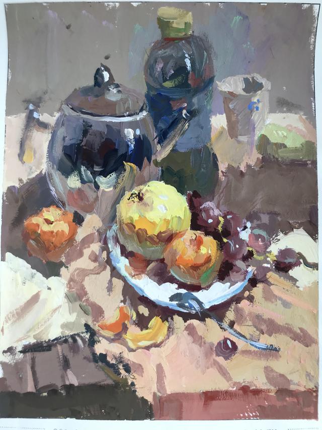 指注意表面效果而无实质内容。主要原因是对画面的整体意思淡薄,这里既有对形体结构的理解问题以及光感的把握,在有细节的物体上处理的华而不实,耍小“聪明”,也是产生“浮”的重要原因。(下图作品画面朴实又张力,物体塑造深入而完整)。