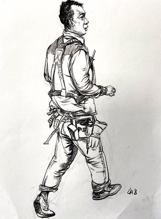 用力部位:画时手指动的少,靠手腕的力量压笔,手腕及肘部上下左右摆动来控制绘画的方向范围。