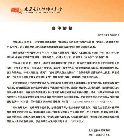 马苏马苏维权胜诉八卦李小璐 |