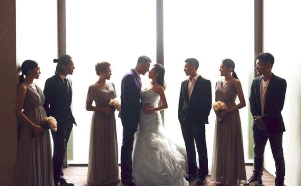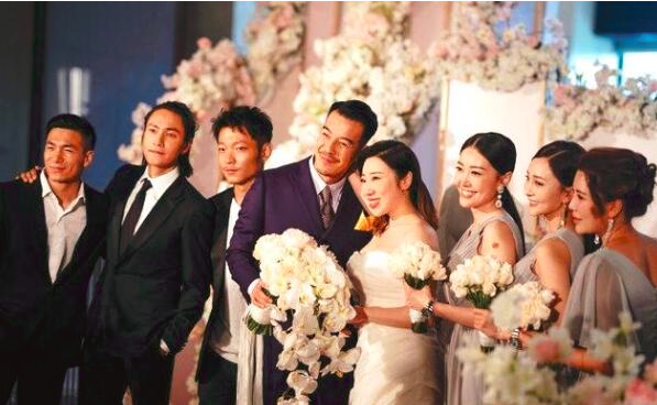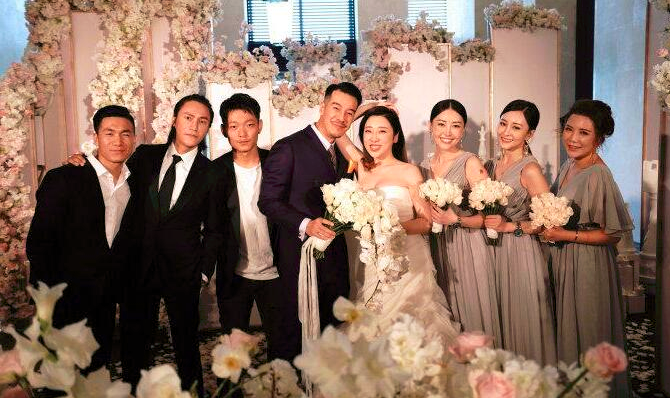 这一次婚礼的伴郎团中,可以算是帅哥美女云集了,有了陈坤作为伴郎成员之一,感觉新郎新娘的颜值都得到了很大的提升。一身帅气的黑西装和扎起来的长发,让这个已经快要到不惑之年的男人显得更加年轻和精神了。