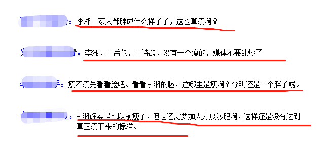 网友们纷纷根据图片发表自己的看法,有理有据。有的网友说:“李湘一家人都胖成什么样子了,这也算瘦?”还有的说:“瘦不瘦先看脸吧。看看李湘得的脸,这哪里是瘦啊?分明还是一个胖子啦。”还有的人认为,李湘、王岳伦和王诗龄这一家人总是到处刷屏,让人看了之后心生反感。当然,这并不代表所有人的看法。
