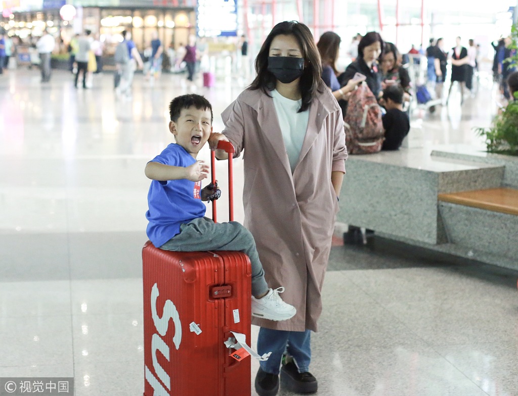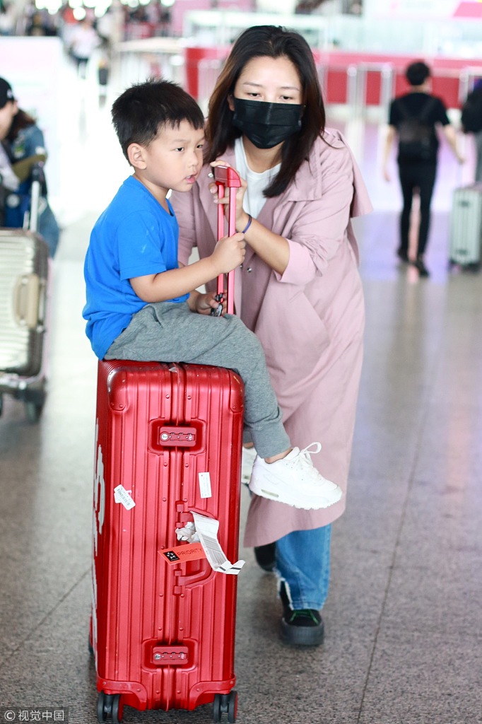 何洁带儿子现身机场,离婚终得解脱?网友却从眼神中读出她的酸楚