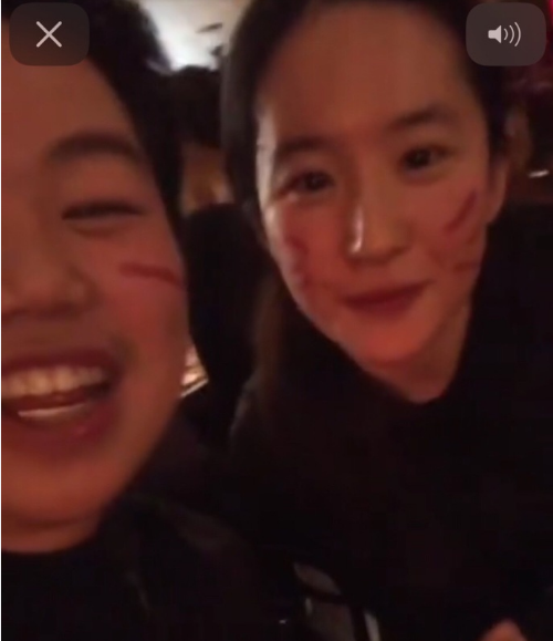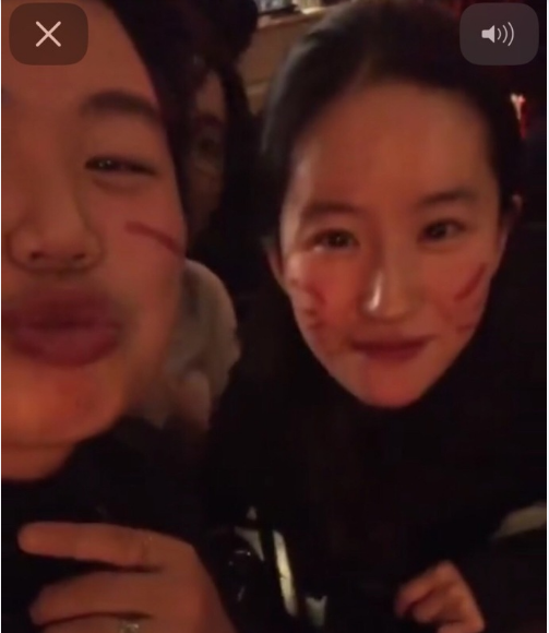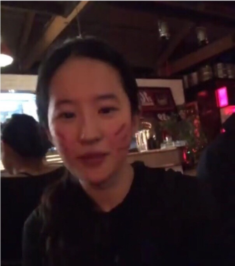 没有多少复杂的发型,清清爽爽,这也是神仙的优点之一。可以看到刘亦菲在自己的脸上涂了六道线,就像猫咪的胡须一样,看来刘亦菲也是充满童心童趣的。一张标准的蛋脸,也是颇有吸引力。