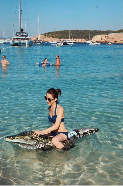 陈赫前妻穿比基尼骑鳄鱼,网友吓出一身冷汗:幸亏当时离婚了