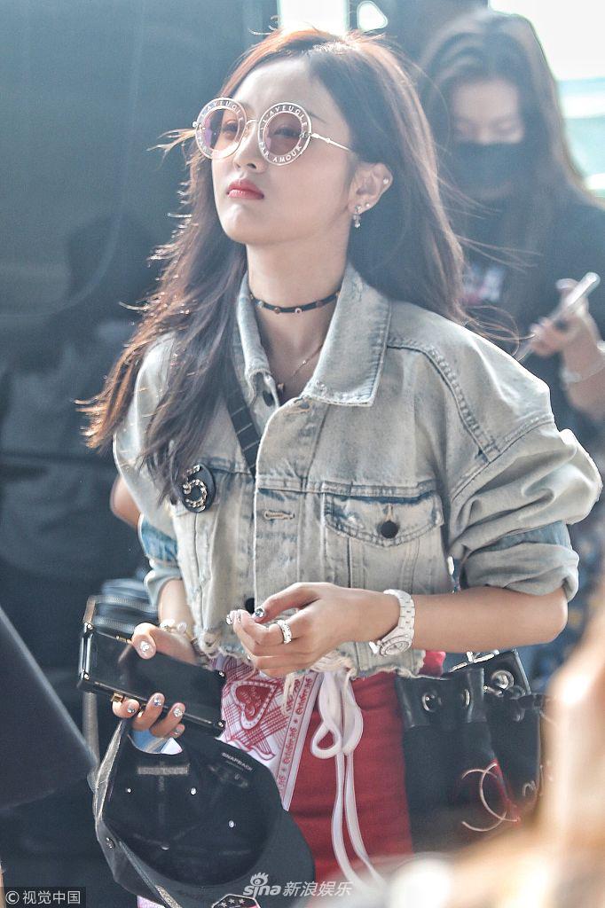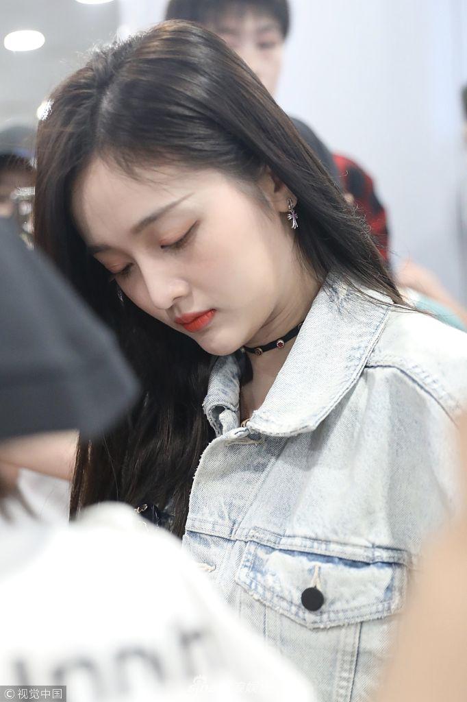 摘掉眼镜的吴宣仪,露出的牙齿十分的可爱和性感。脖子项圈既缩小了脖子,又美化了肤色可谓一举两得。而整张清秀的脸,以及一头乌黑亮丽的长发,更是为机场增色了不少。但是不得不承认,从吴宣仪的表情神态中,能看得出对这种生活状态的厌倦。