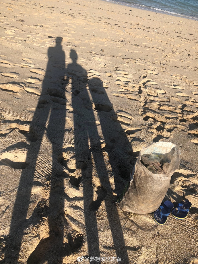 捡了一会后,林志颖也是和自己的儿子一起合了一张影,这当然不是炫耀,而是一种纪念的方式。沙滩上遍布了脚印,不知道哪些是这对父子留下的,但我们知道,他们的脚印肯定不会少。前方的麻袋也已经接近装满了,可见两人出工出力丝毫不留余力。在这样极富有意义的教育下,相信kimi肯定能更加健康,优秀的成长。