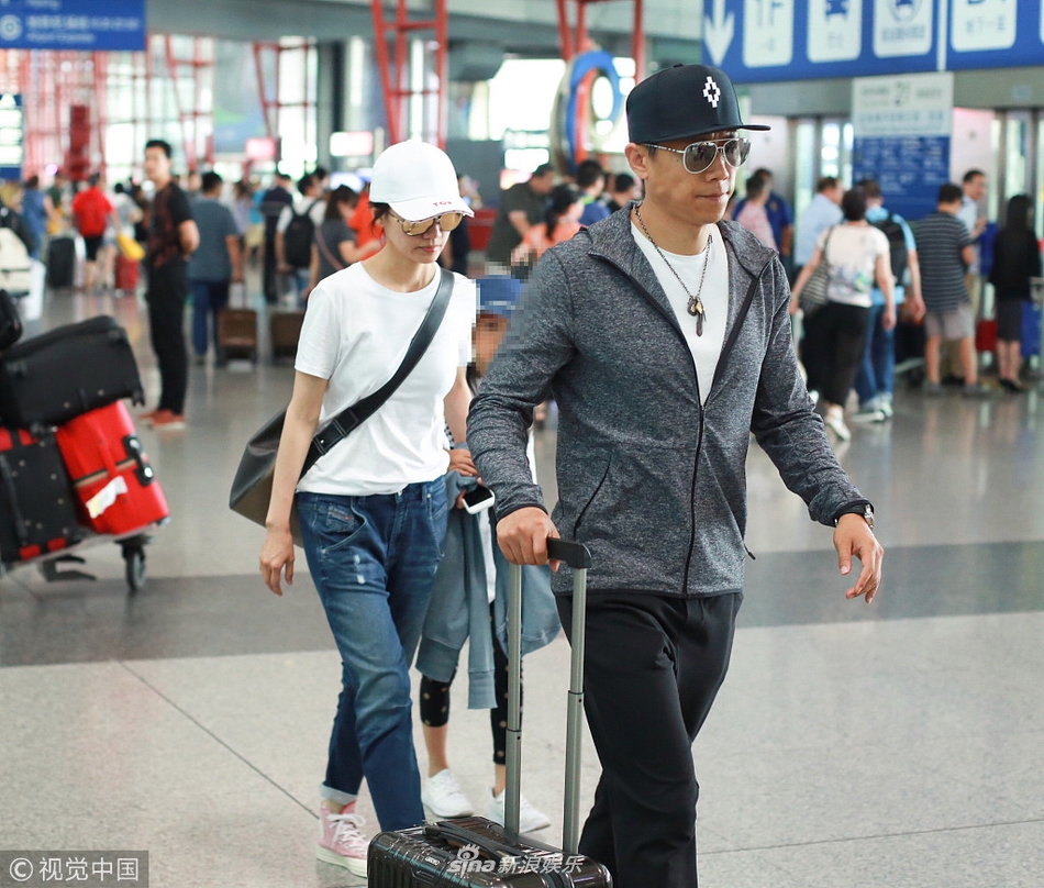 夏雨携妻女机场登机,袁泉极简穿搭风姿依旧,谨慎护女十分霸气