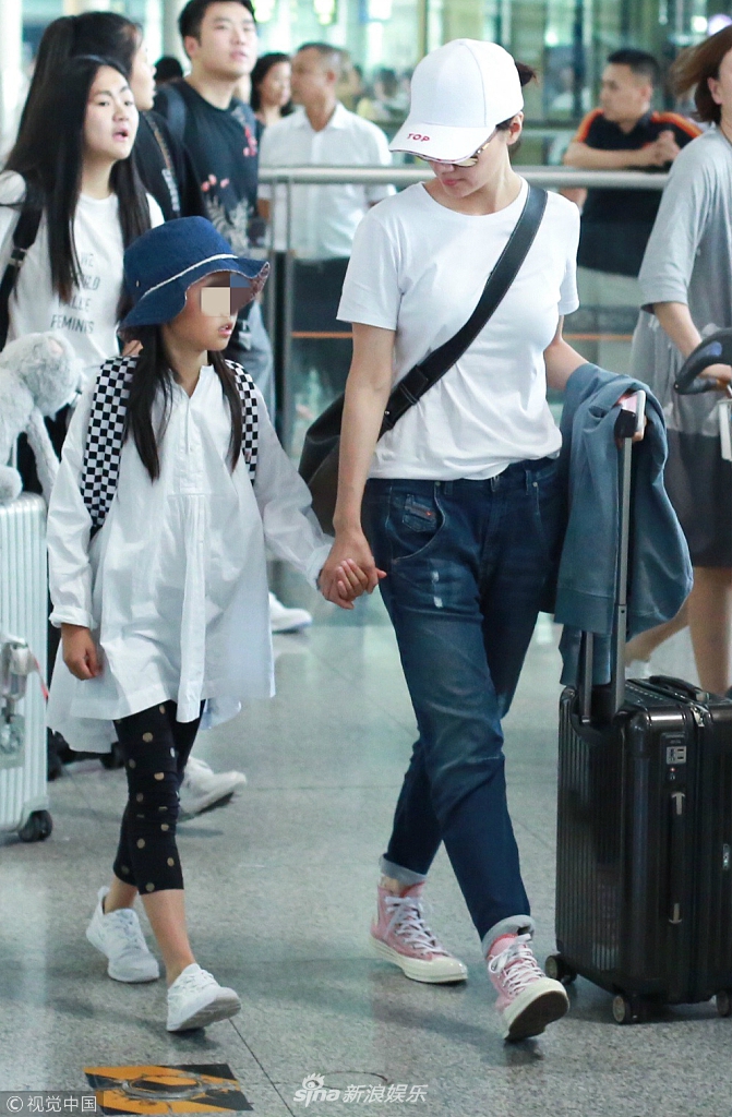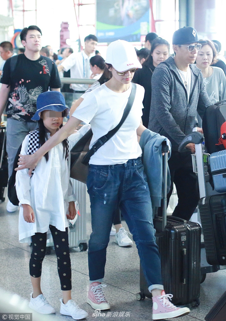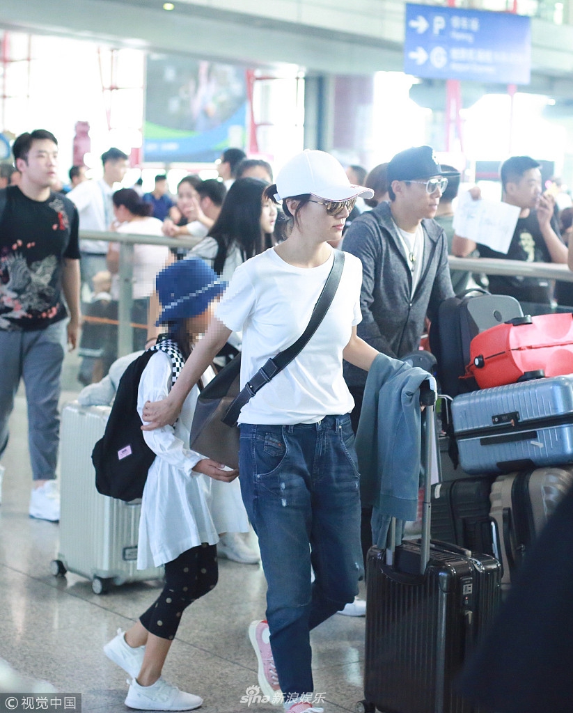 由于前面一段路人群比较拥挤,夏雨也是紧抿着双唇。而袁泉干脆是直接把女神兼母亲的气场给放了出来,一手护着女儿往里面靠,一手推着手提箱继续前进。眼睛看也不看抓拍者,十分的冷漠,却又莫名的好看。